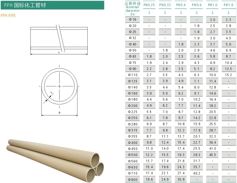 PPH管材規格表|pph管材的規格型號-PPH管材規格表尺寸圖-鎮江平達